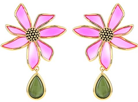 You can sweeten your botanical look with “Wild Garden Drop Earrings” from Kate Spade. These brass metal flowers with pink petals and a green stone attached will add a dreamy touch to the outfit.