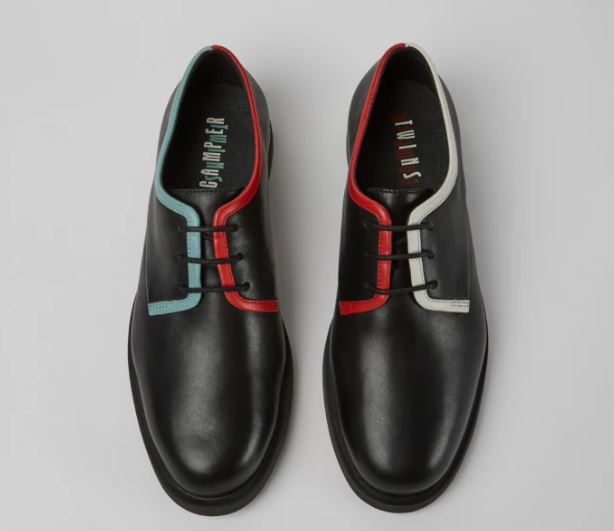 Camper’s classic “Twins” concept is based on the idea that shoes don’t necessarily need to be identical. They look mismatched because the collar of one shoe is half-green, half-red, and the other shoe collar is half-red, half-grey. It makes them unique and artistic.