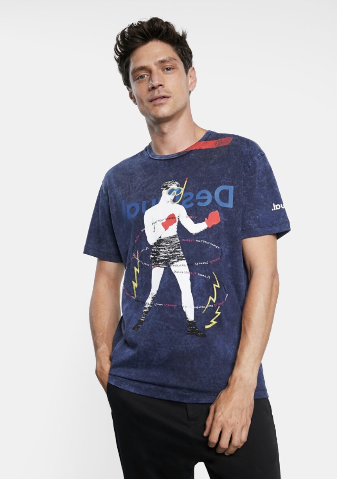 For a beach house party, you need a shirt that is stylistically similar, something that suggests that if it’s a cool party, you might jump into that swimming pool! What would better convey that idea than this navy blue short sleeve shirt from Desigual?