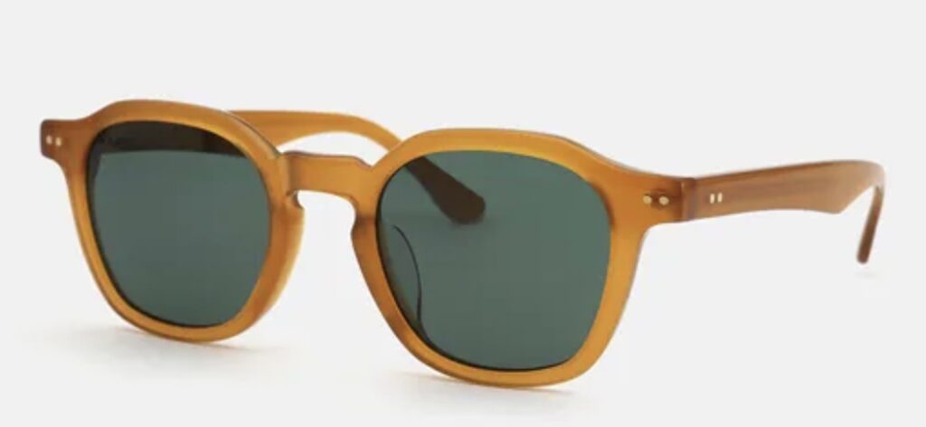 No beach house look is complete without a pair of sunglasses. Check out this elegant but artistic pair with a mustard frame and amber green lenses. This color combination looks very unique and really makes this rustic outfit stand out.