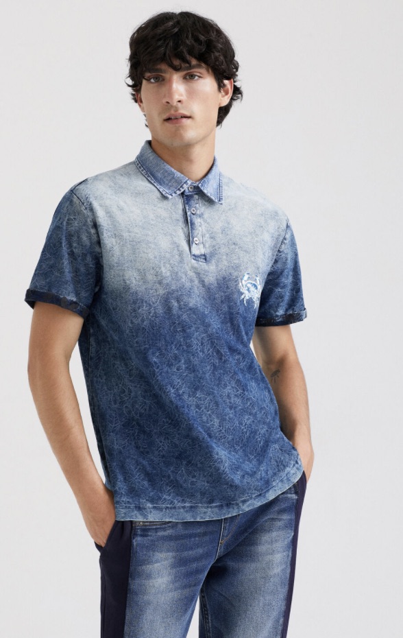 If you want to save that rustic look for a remote log cabin, go with some marine vibes for this beach house party. Start off with a shirt that has a seaside feel. This blue shirt from Desigual has an ombre effect, meaning that there’s a light-to-dark gradient that is inherently moody or dramatic. For this shirt and setting, I’d say it’s mimicking the ocean and its depth. Notice that it’s lighter at the shoulders and more navy at the bottom.