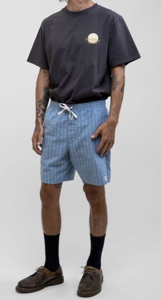 I would suggest going for denim or navy blue shorts. They will really complement that shirt we picked. Here are three options to choose from…