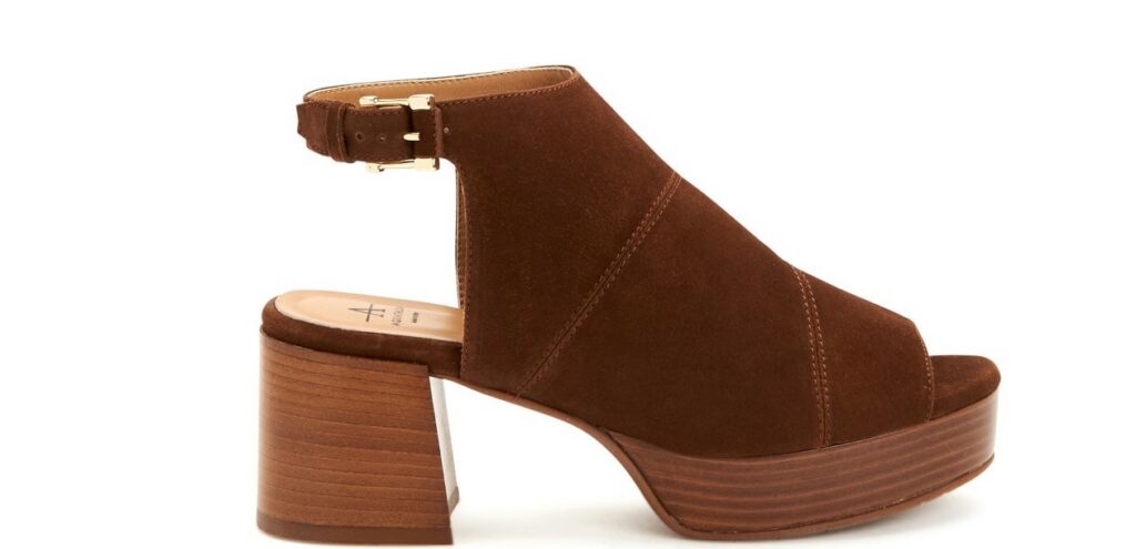 If you are looking for an extra summery option, and want your sandals to feel very breezy, opt for Aquatalia’s Siena sandals. These ones have the same block heels but a different crisscross strap design.
