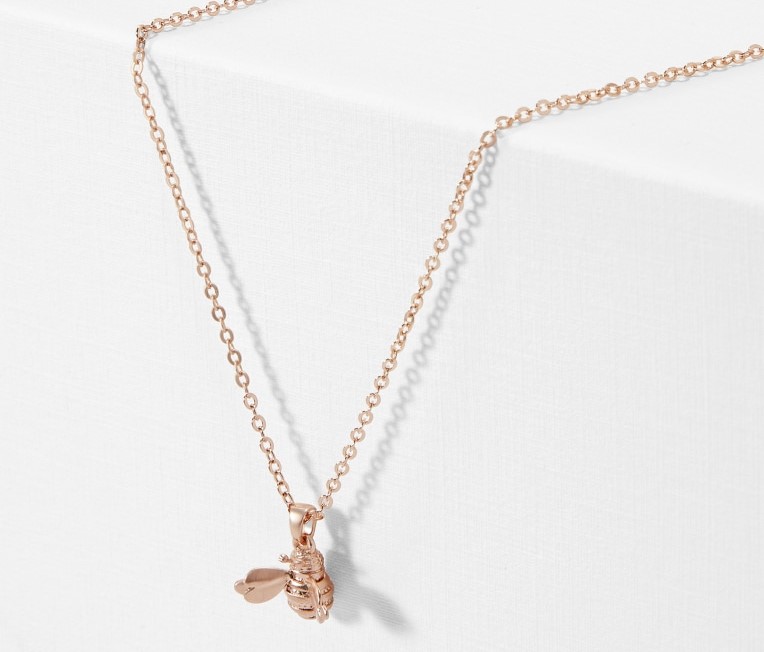 As for the necklace, I wouldn’t go for a matching set. Let’s make this look a bit more fun by going with a bumblebee pendant necklace!