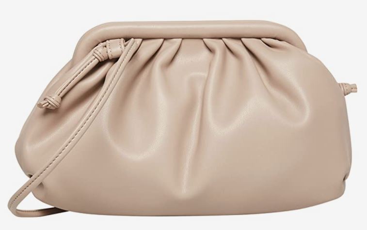 And I think that this cream-colored soft clutch from Steve Madden would do an amazing job of bringing the whole outfit together. It looks scrunchy and is stylistically coherent with the soft balloon sleeves of the trench coat.