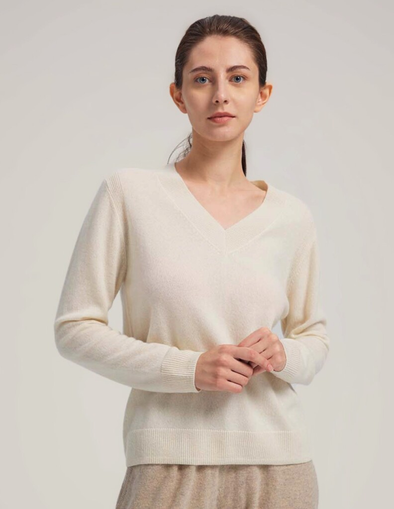 This classic sweater with close-fitting sleeves is far from flashy, and that’s what makes it a versatile piece that you will be able to dress up or down. This ivory top is perfect for building your capsule wardrobe as it will go well with almost anything! The luxurious quality material will make you feel at ease.