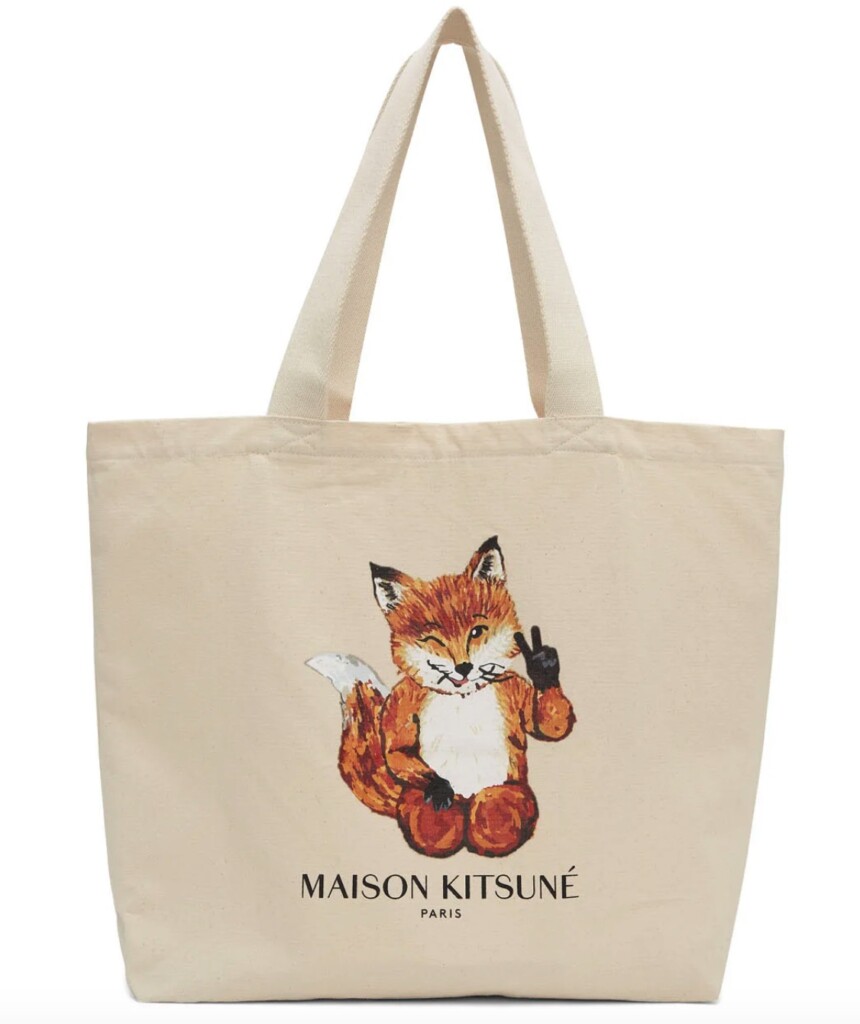 If you are worried that the mischievous fox depicted on the canvas of the bag will attract too much attention, keep that side of the bag close to your body. Or embrace your inner fox since after all you’re going incognito! No one can see you! You can get away with things! (That’s probably not true.) What is true is that the off-white canvas would complement the ivory sweater selected above as well as the top beige part of the flat shoes.