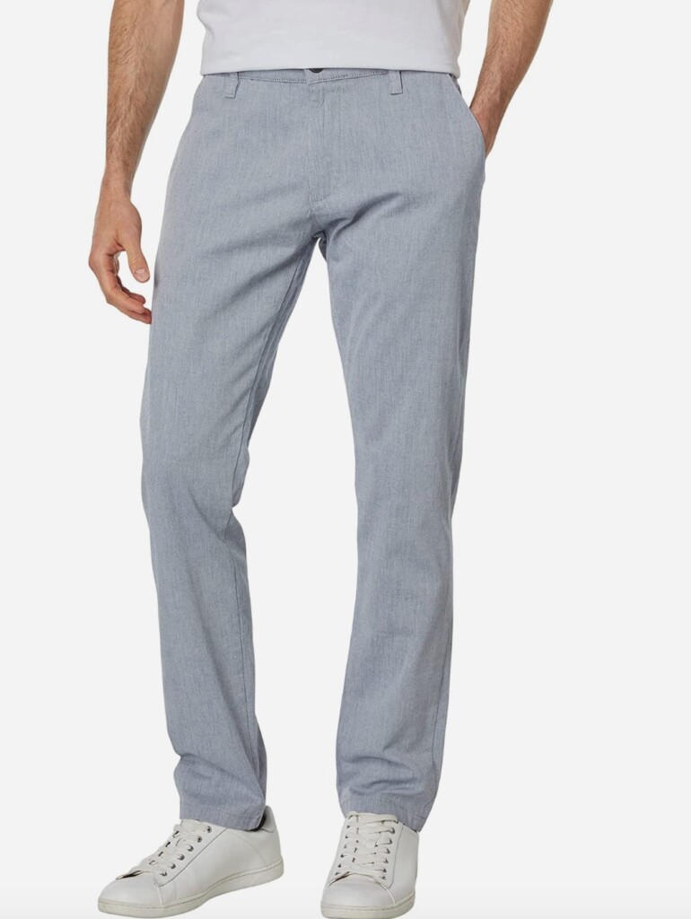 The shirt’s stripes will also complement the light blue chinos selected above. It’s the right pick for shorter guys as it has a slim fit and tapered bottom, which is helpful since extra (non-tapered) fabric around the ankles can sometimes make your legs seem shorter.
