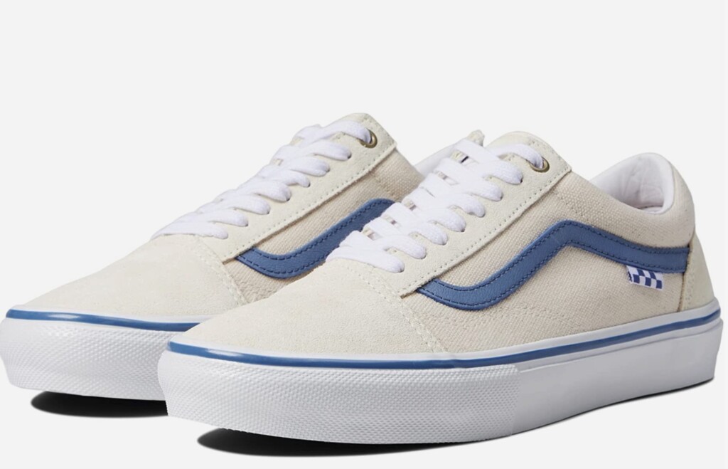You can add some extra blue stripes to your shoes, as well! The pair of Vans above would be great for summer and this overall outfit.