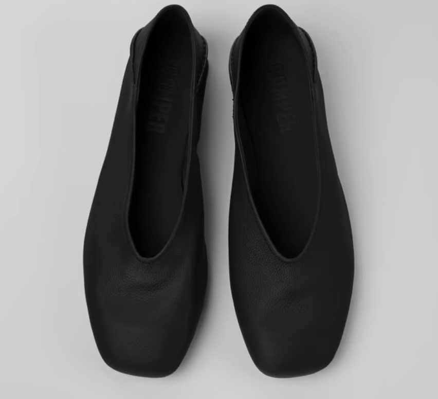 Check out this pair of black ballerinas from Camper, a shoe brand that started in 1975 on the island of Mallorca, Spain. The leather is soft and high quality, which means more comfort for you! The slightly squared shape also looks very classy and will complete any look you have in mind.