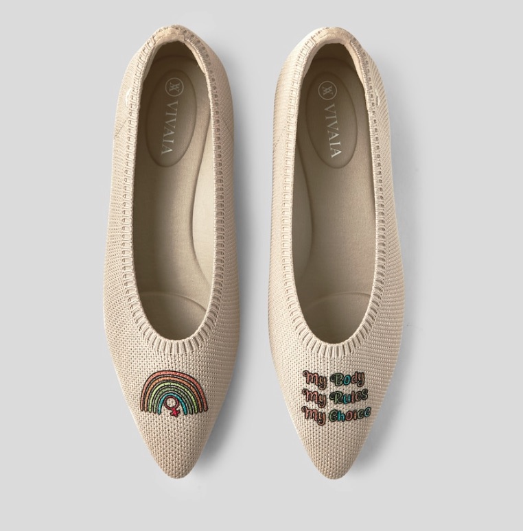 These pointy-toed flats come in a pleasant almond color and have a strong message. One shoe has a rainbow and a female sign depicted on it, and the other has the following statement: “My Body. My Rules. My Choice.” So now, you just need to decide which pair complements your character and your wardrobe!