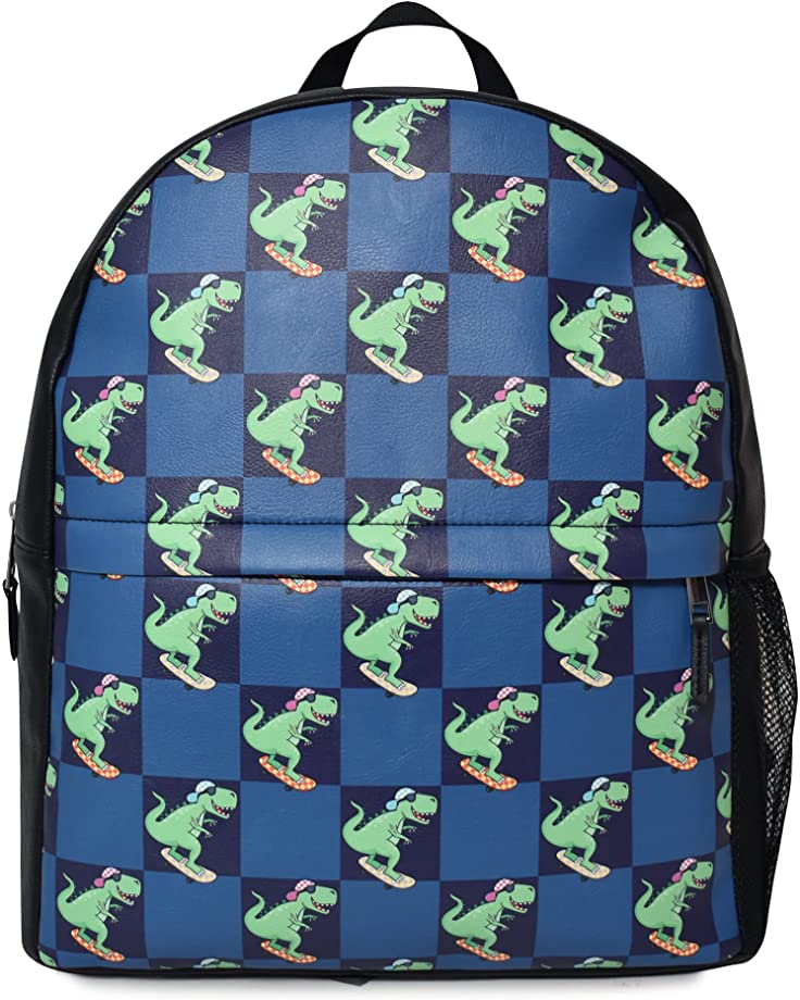And what could be cooler than a dinosaur in sunglasses on a skateboard? Maybe a backpack depicting it! The checkered blue one above will stand out and give the overall look a little roar. (Oh no, was that another “little”?)