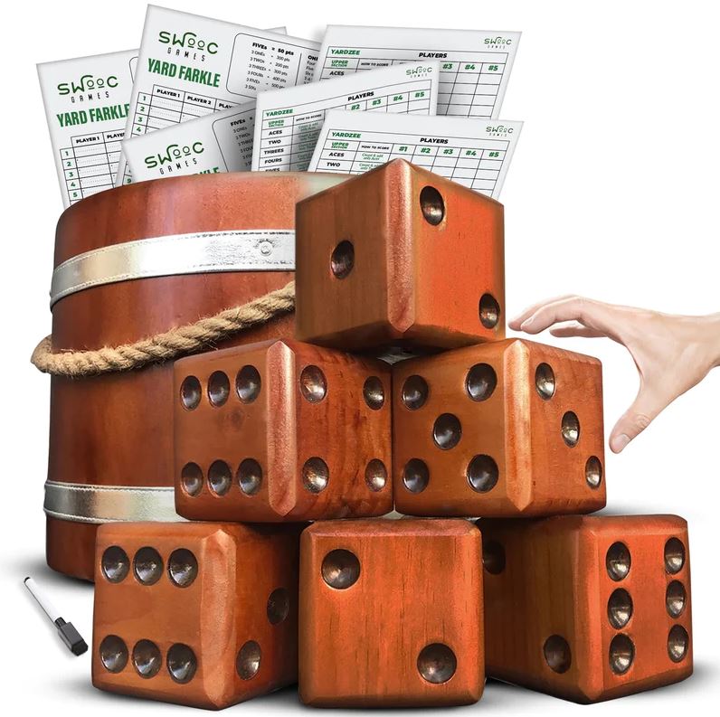 Don’t roll the dice on picking a good game. Or actually do roll the dice with 6 oversized wood dice intended for outdoor yard games like Yardzee and Farkle! This fun kit includes 5 double-sided scorecards, a wooden bucket, and a dry-erase marker. It gives you everything you need to play over 20 games, and again, it’s beautiful to look at.