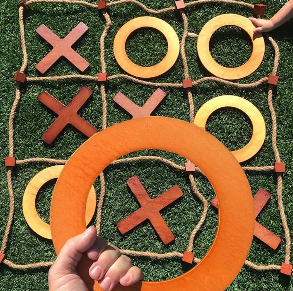 If you want to bring friends or family together to bond over another option with lovely aesthetics, the toss version of the classic tic-tac-toe might be what you were looking for. The kit above is once again jumbo-sized: it’s a 3ft x 3ft game board with oversized 10in x 10in X’s and O’s.